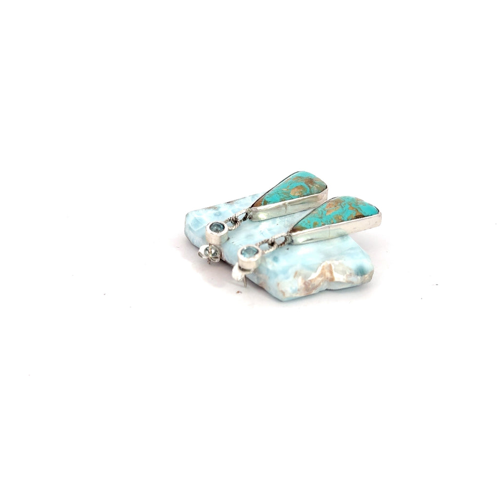 Blue Zircon & Turquoise gemstone stud and drop earrings, jewelry