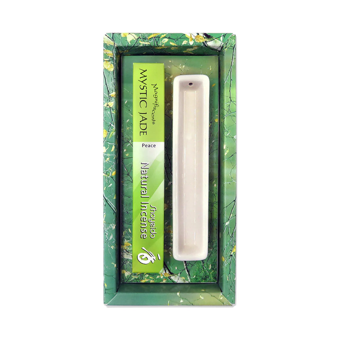 - Mystic Jade: Enjoy a moment of peace through incense. Myrrh, sandalwood, cloves, and spices constitute this gentle, calming Shoyeido incense fragrance.