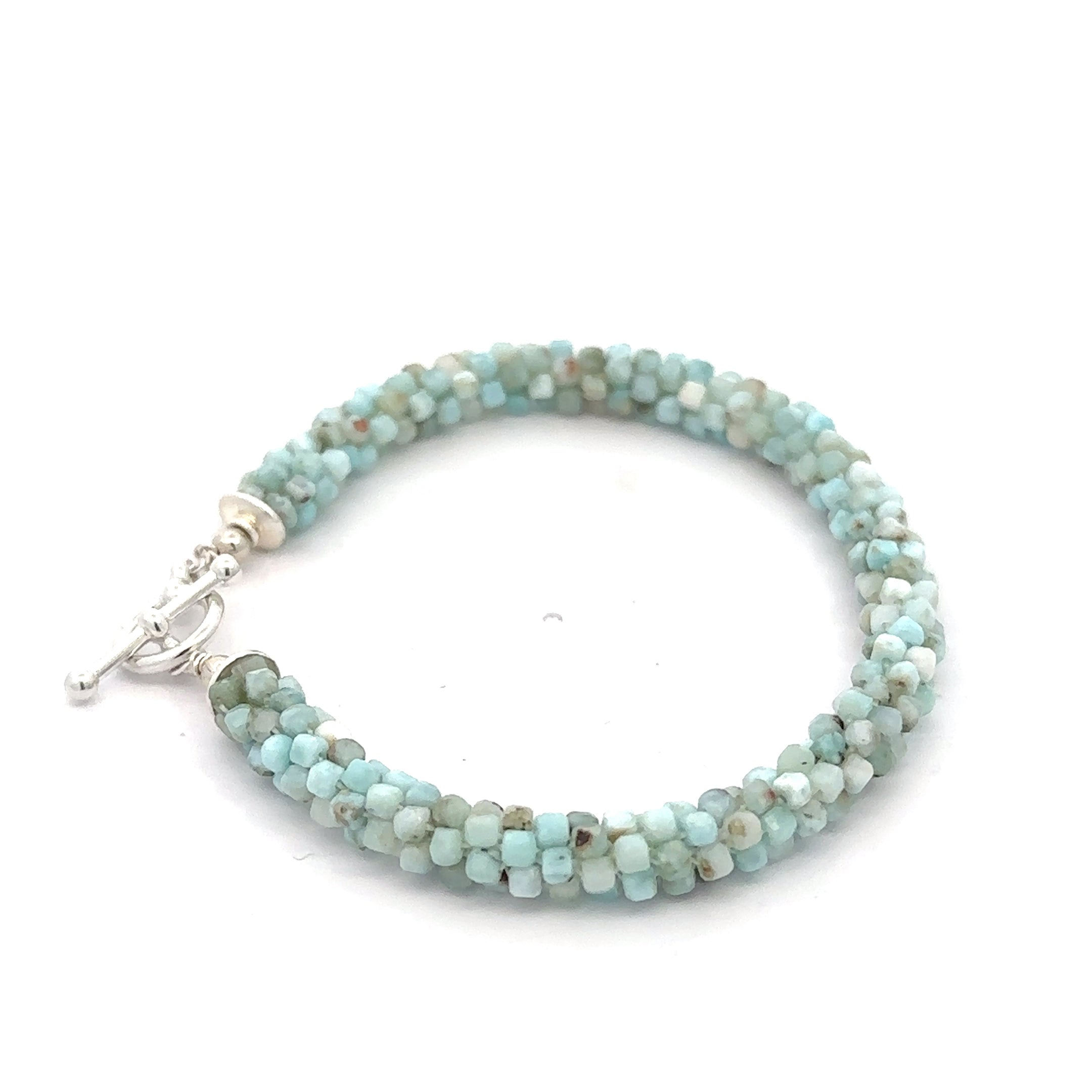 Larimar Gemstone Crocheted Bracelet – Handcrafted Jewelry for Serenity & Confident Communication