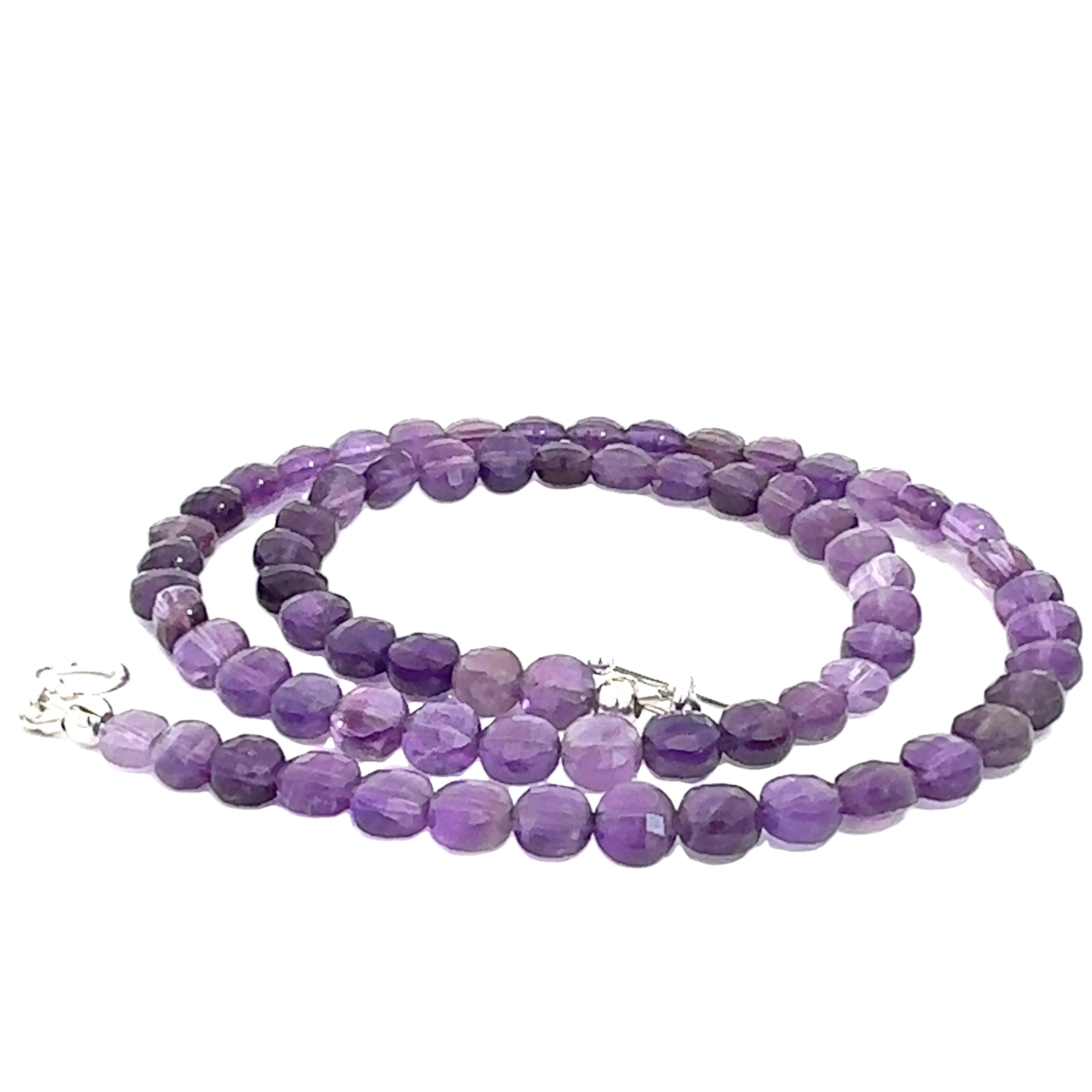 Amethyst Gemstone Necklace – 18.5'' Faceted Coins with Sterling Silver Toggle | February Birthstone Jewelry