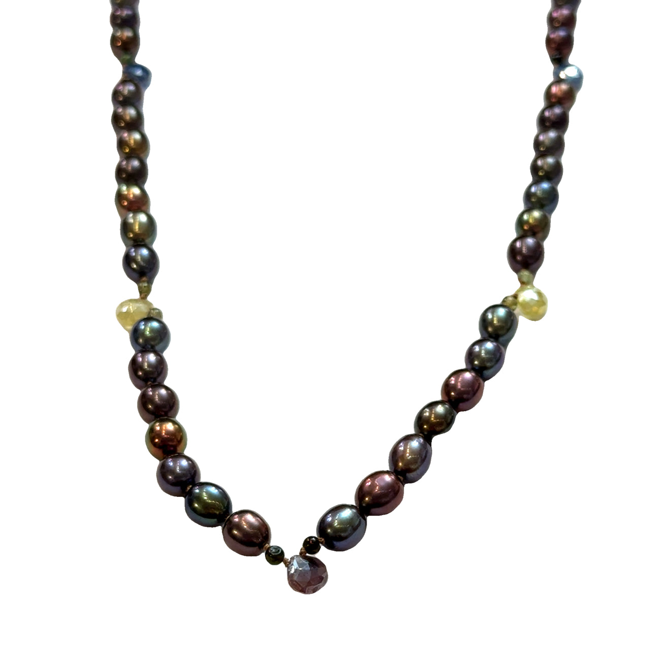 Bronze Freshwater Pearl Necklace – 21" Rice‑Shaped Pearls, Watermelon Tourmaline Accents
