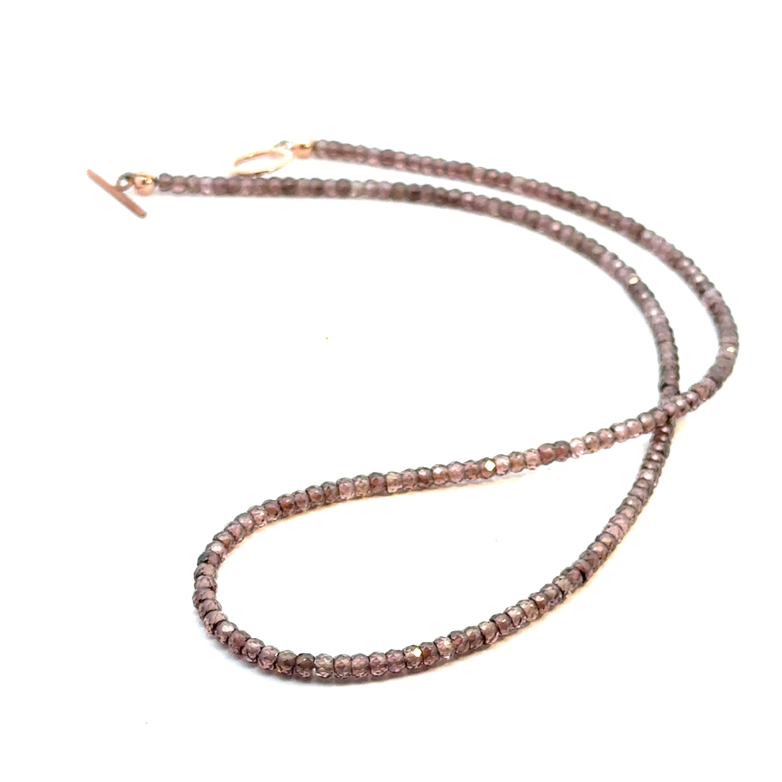 Zircon Gemstone Beaded Necklace – 17" Faceted Round Beads with Rose Gold Toggle