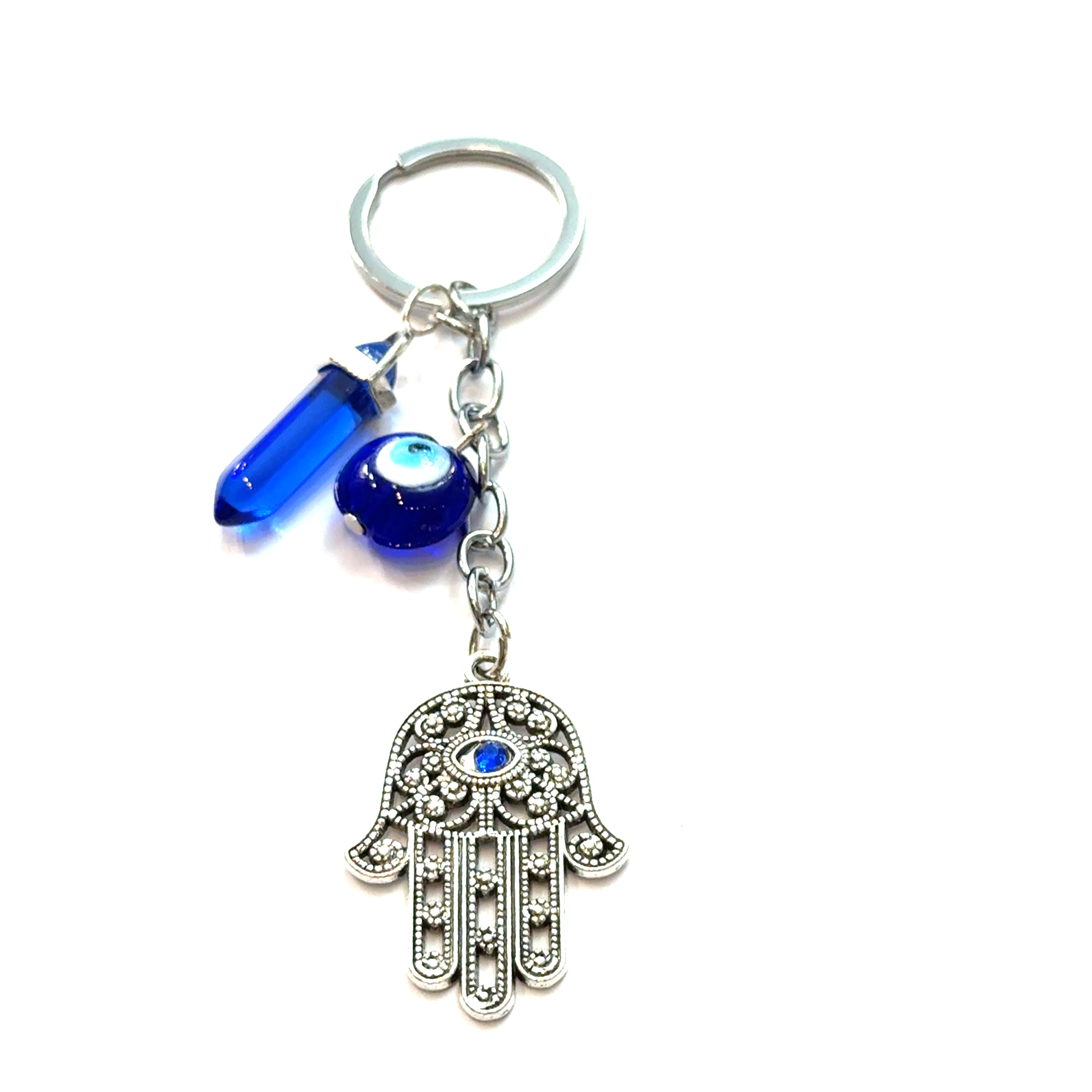 Here you will find several wonderful key chains that have a glass evil eye and silver or gold Humza or just the evil eye, or just the Humza. We love Humza's and the evil eye so it was decided to sell them in our store.