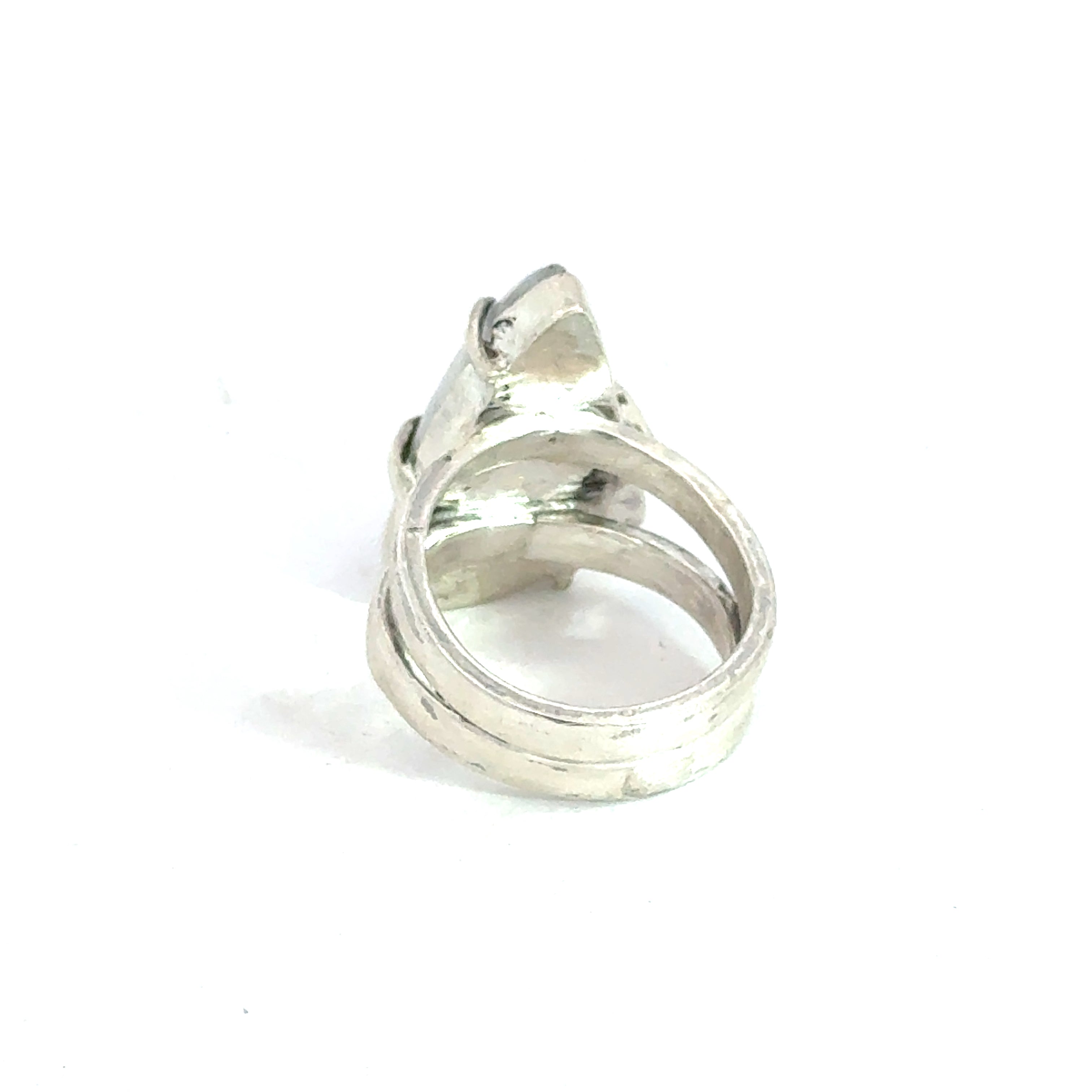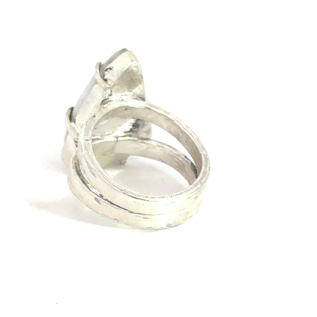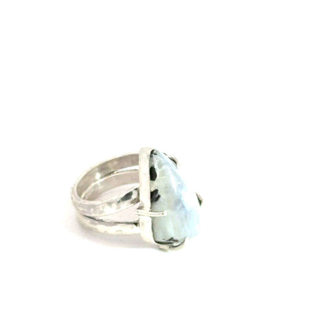 This stunning Rainbow Moonstone gemstone ring is a statement piece for sure! The Rainbow Moonstone is a beautiful stone with outstanding clarity and is flawless. Rainbow Moonstone is a Cabachon cut and set in a Sterling Silver prong and bezel set with a simple Sterling Silver split band. Measurements of the Rainbow Moonstone are 21x15mm, a triangular-shaped gemstone, and the ring shank size is 7. A great ring to have in your/ someone special's jewelry collection. A piece that could be worn with any outfit to dress it up and/or a special event! A one-of-a-kind that no one else will have. What can you say about that? Rainbow Moonstone is also a fantastic healing stone. If you are interested in the healing properties of Rainbow Moonstone, they are listed below.
