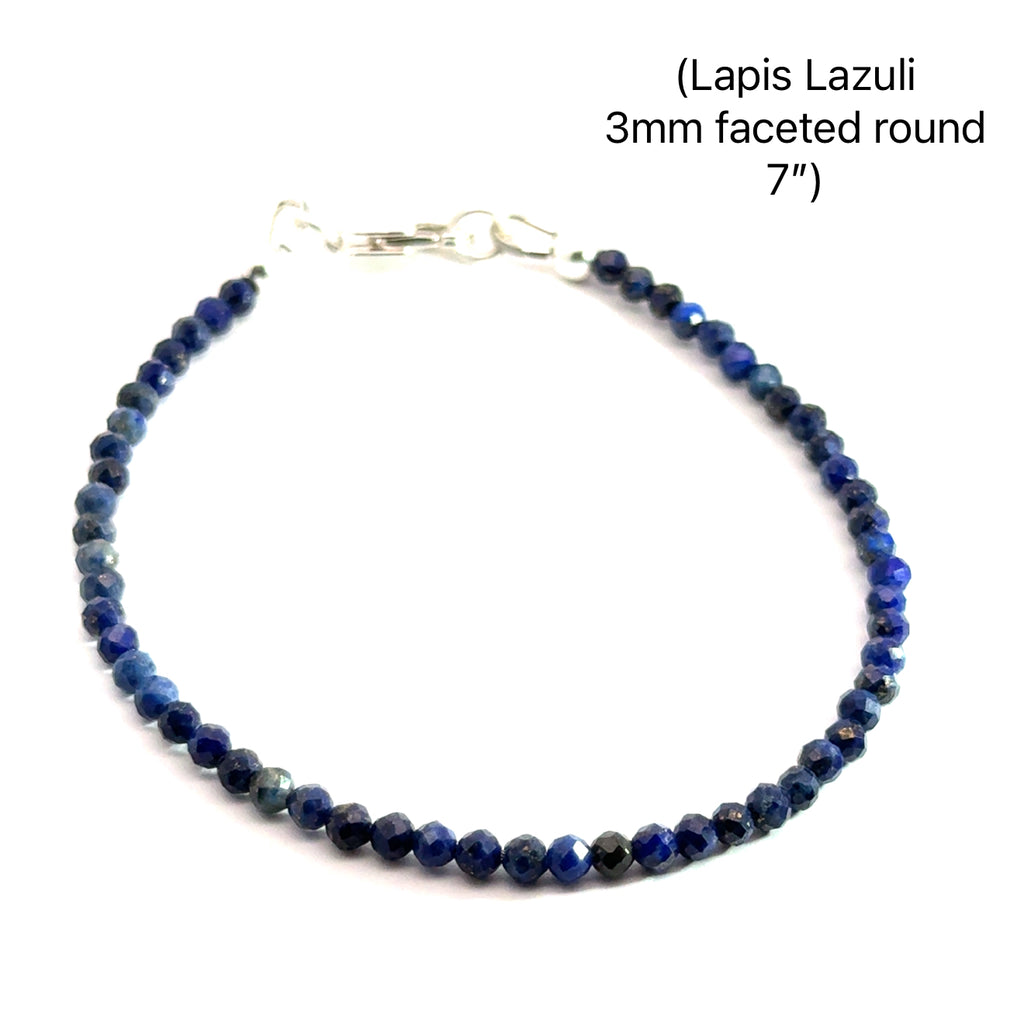 You will find a Genuine Lapis Lazuli Gemstone beaded bracelet with a sterling silver or gold-filled lobster clasp or a gold-filled toggle. We have a range of sizes, shapes, and designs of our bracelets, which are custom-made here in our studio at our store. If you don't see the design or size you prefer, please don't hesitate to contact us so we can custom-design it for you. It's a great jewelry piece that you can wear daily or for a special occasion. You could also wear them alone or stack them with others. If you are interested in the metaphysical aspects of Lapis Lazuli, we provide the information below.