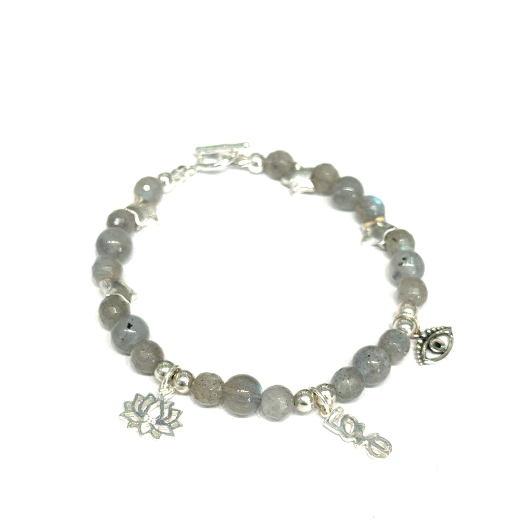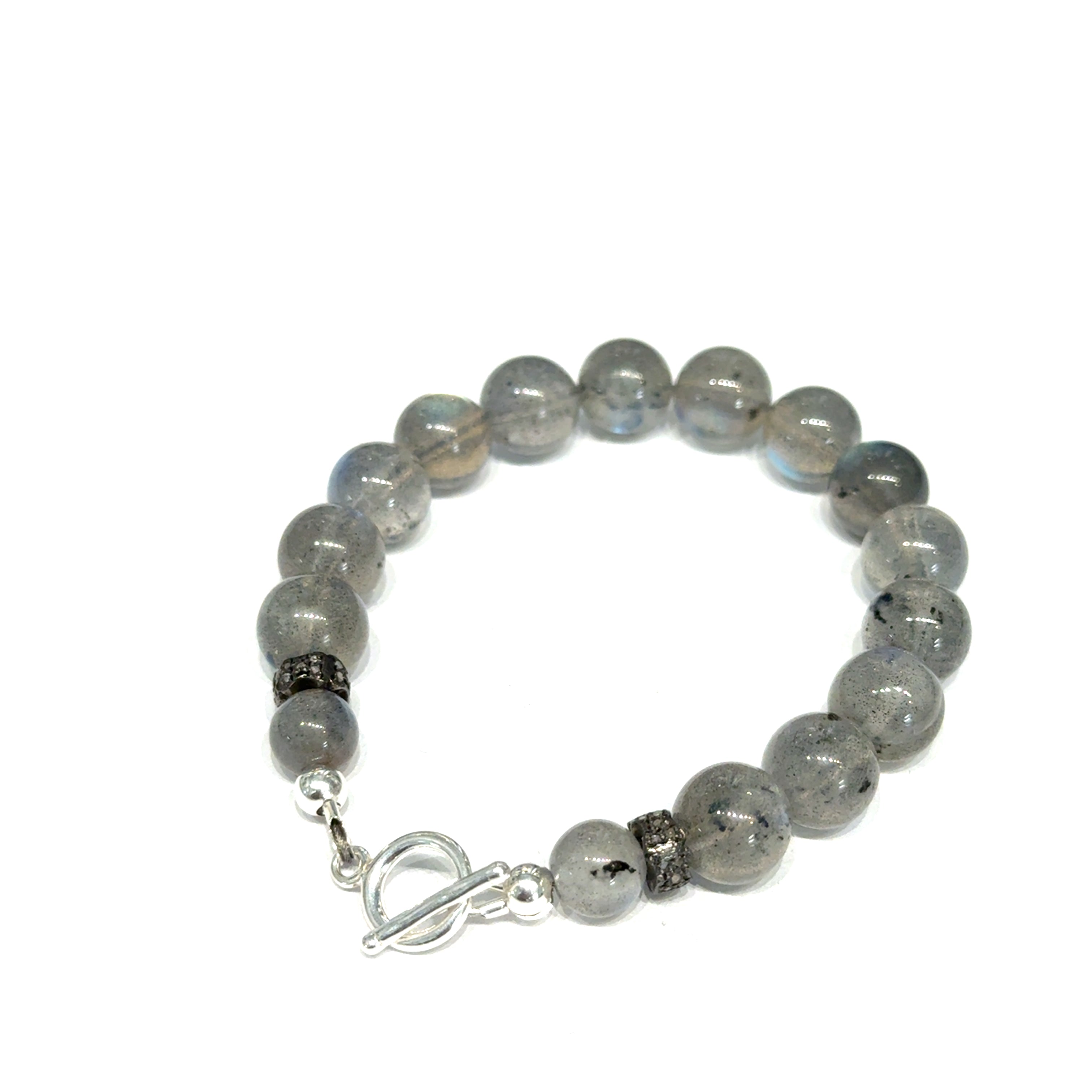A stunning Labradorite gemstone bracelet with sterling silver toggle. We have different styles of and sizes. Look below to see the options we have. A great bracelet that could be worn every day on it's own or stacked with other bracelets. A great healing stone bracelet too. A must have!