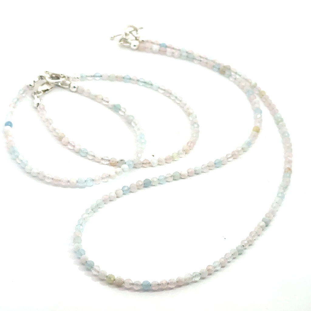 Genuine Morganite gemstone beaded necklace