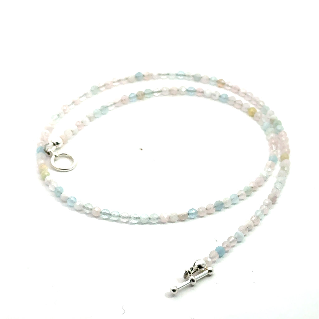 Morganite Gemstone Beaded Necklace – 17.5" Faceted Beads with Sterling Silver