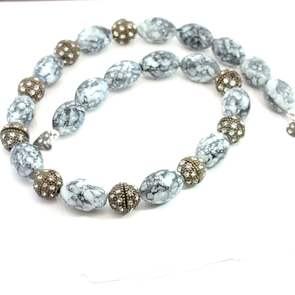 Black & White Marbled Beaded Necklace – Ivy's Jewelry Collection