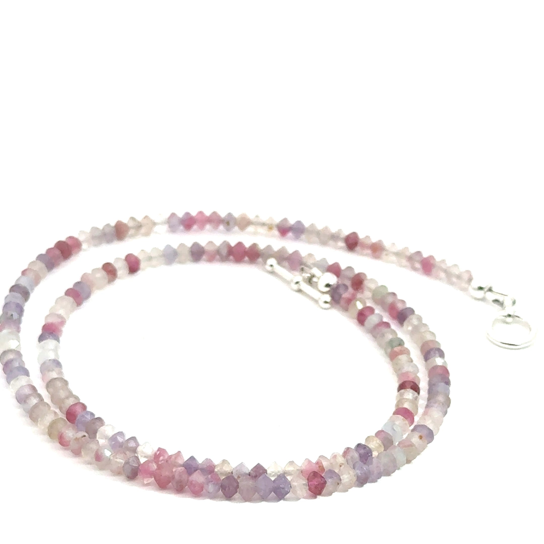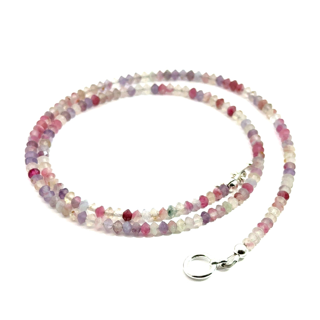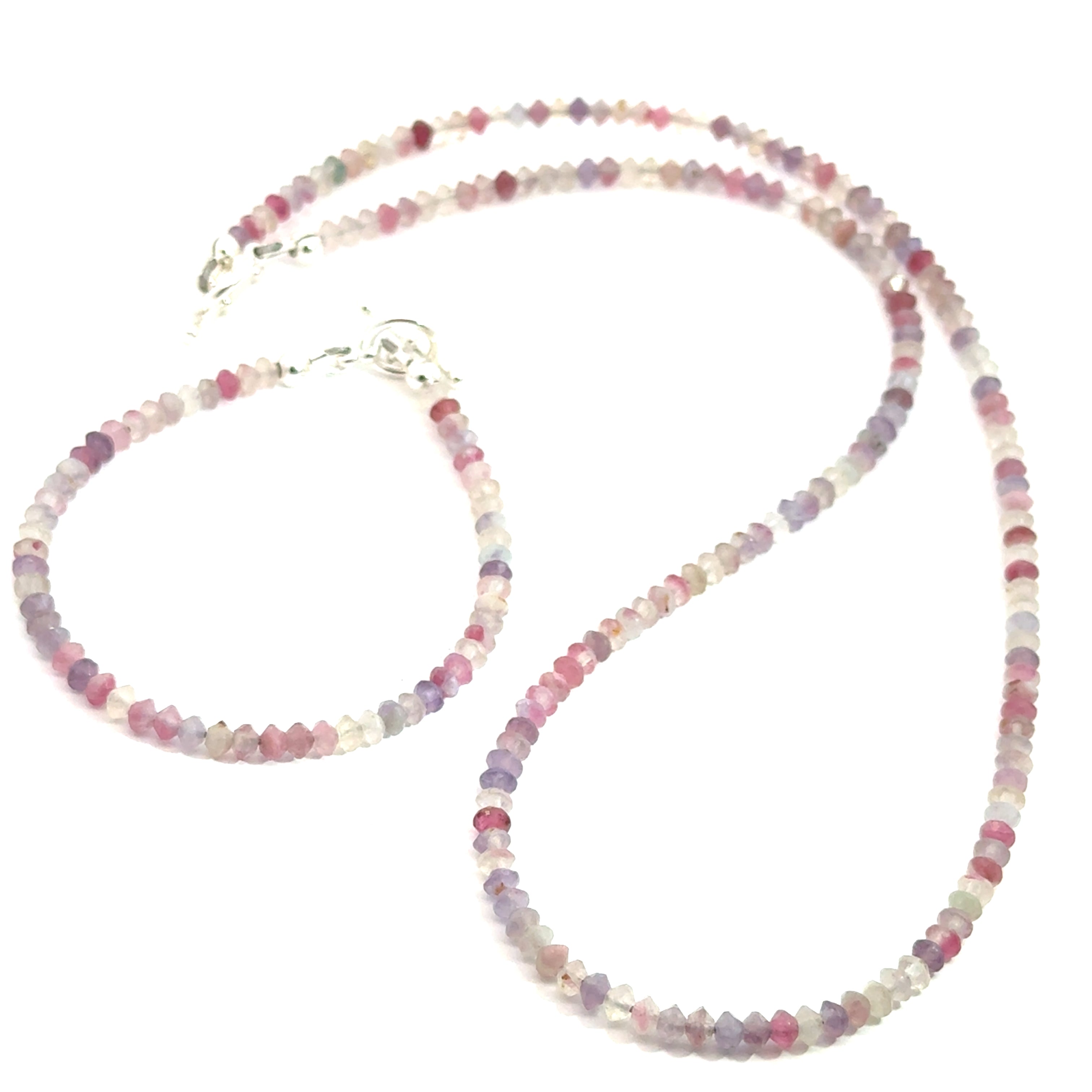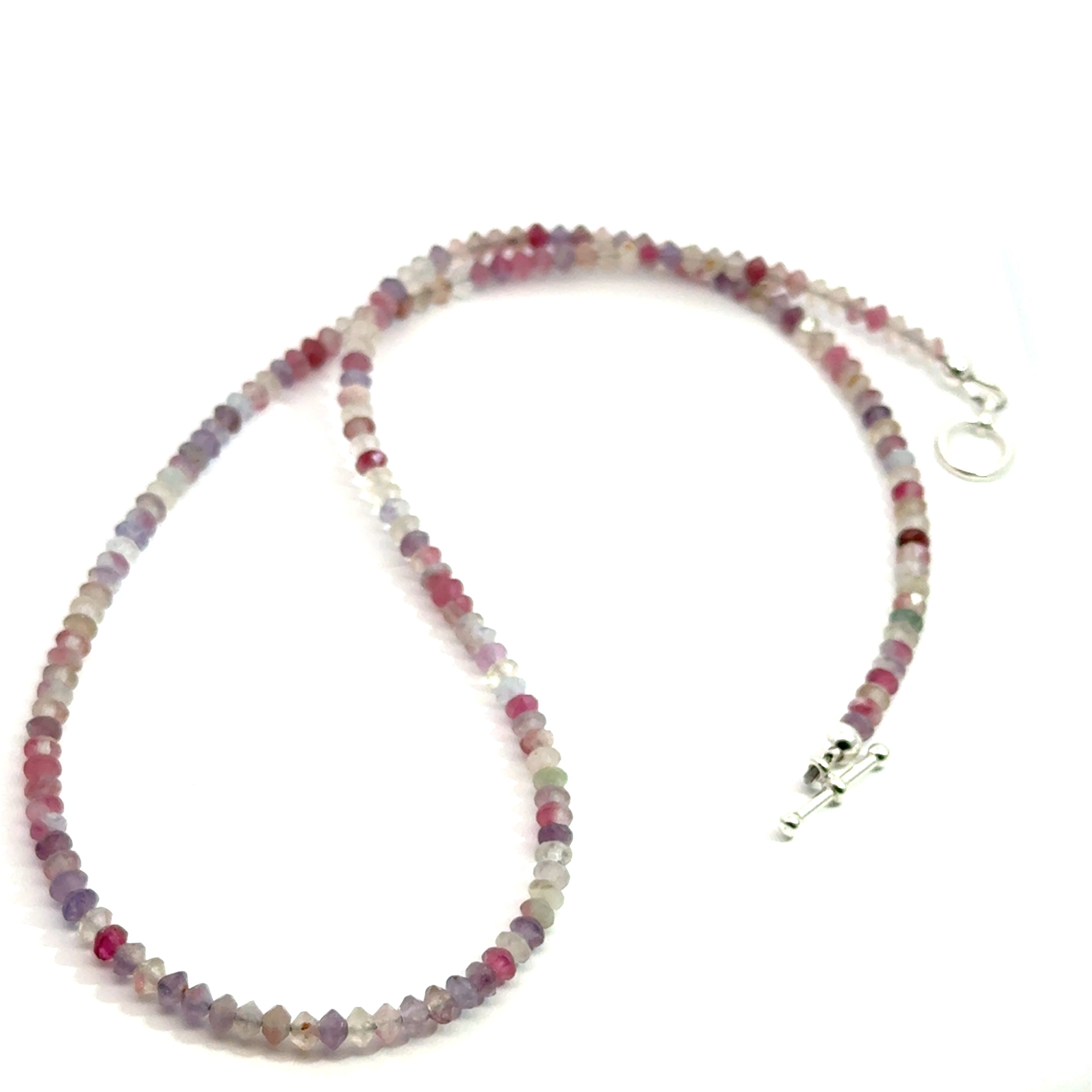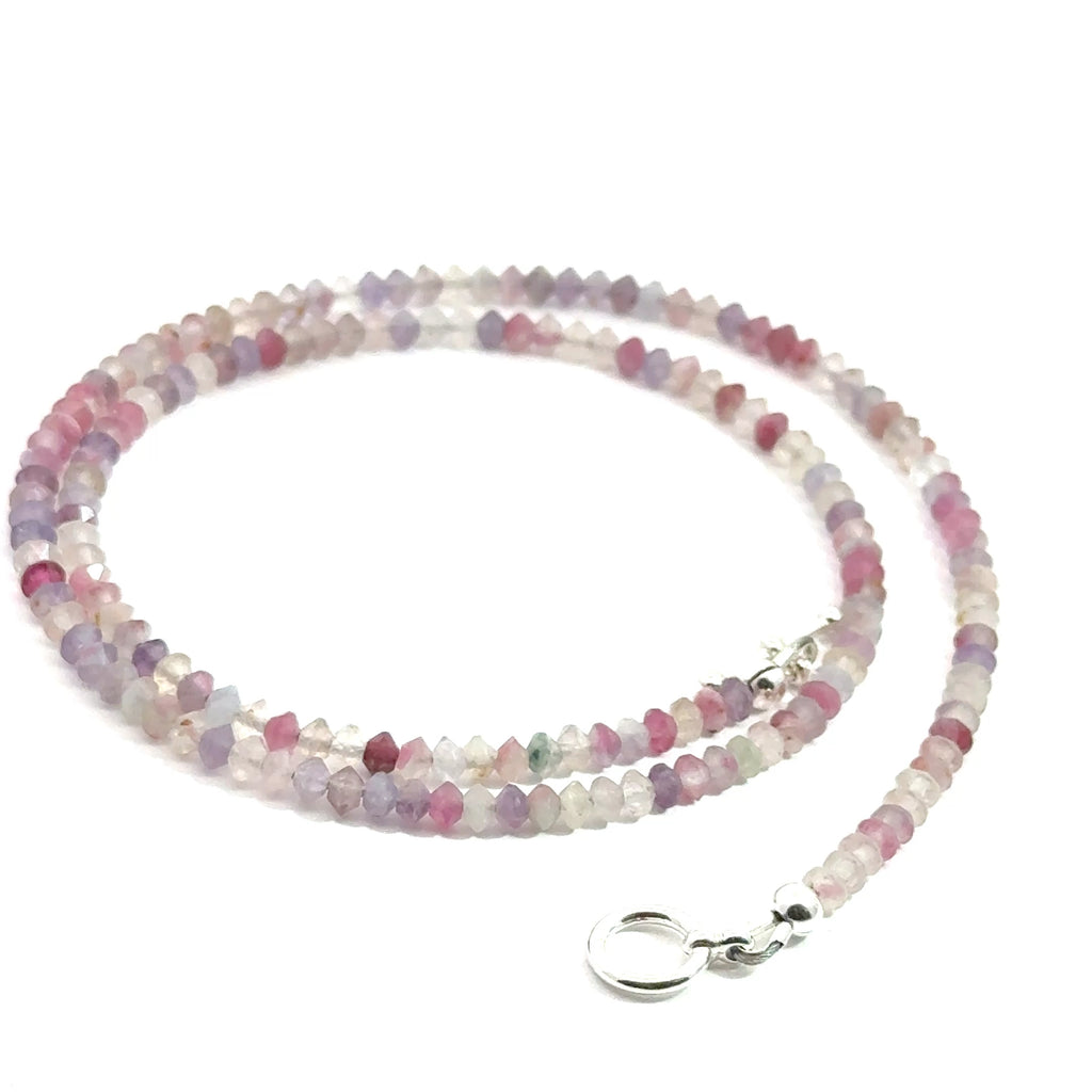 A stunning Pink Tourmaline faceted gemstone necklace with a sterling silver toggle. Size 18.5'' and might fall below one's collarbone. A great necklace that could be worn every day, on a special occasion, on its own, or layered with other necklaces. A great healing stone necklace, too. A must-have! This necklace also has a matching bracelet if you want to buy it as a set, but it is sold separately.