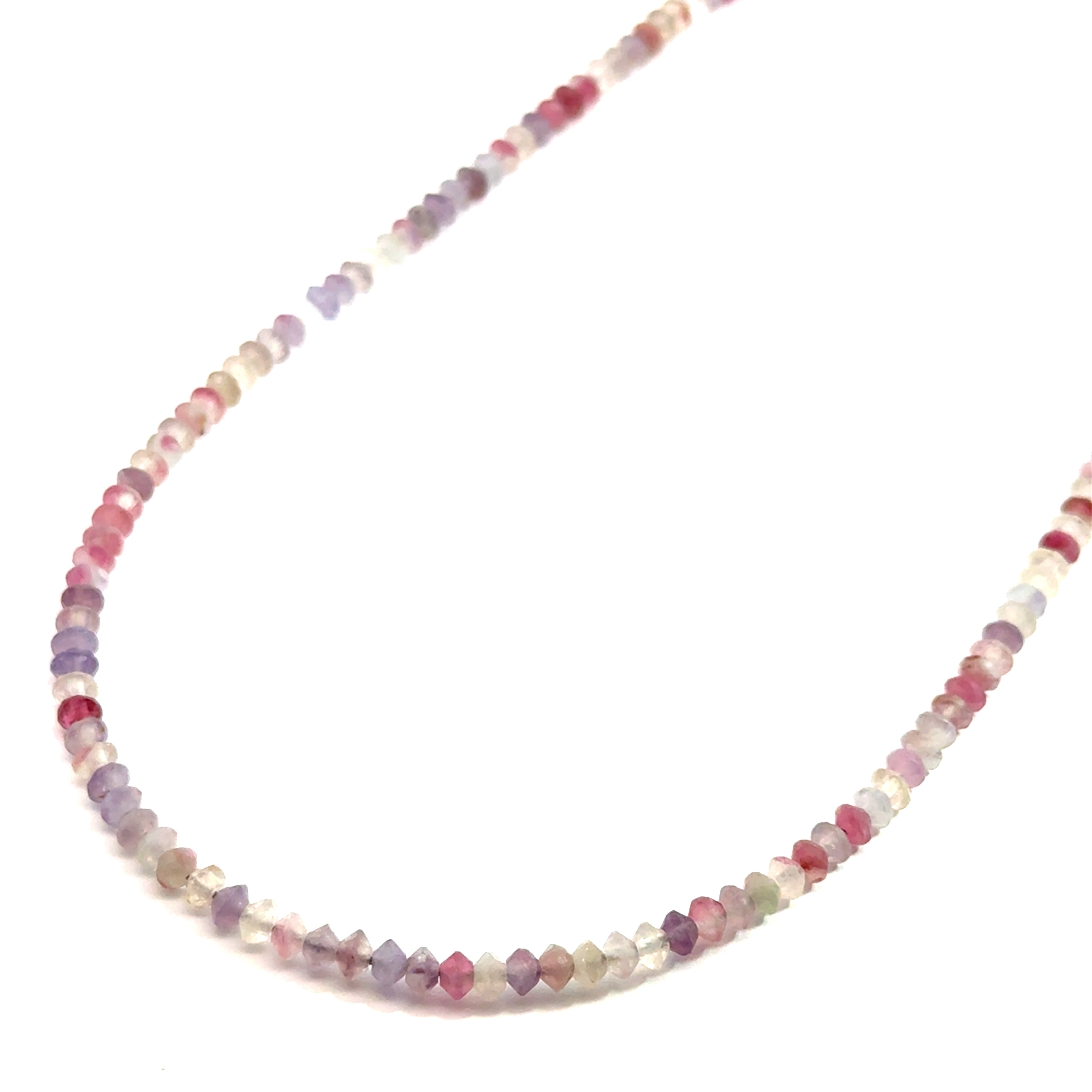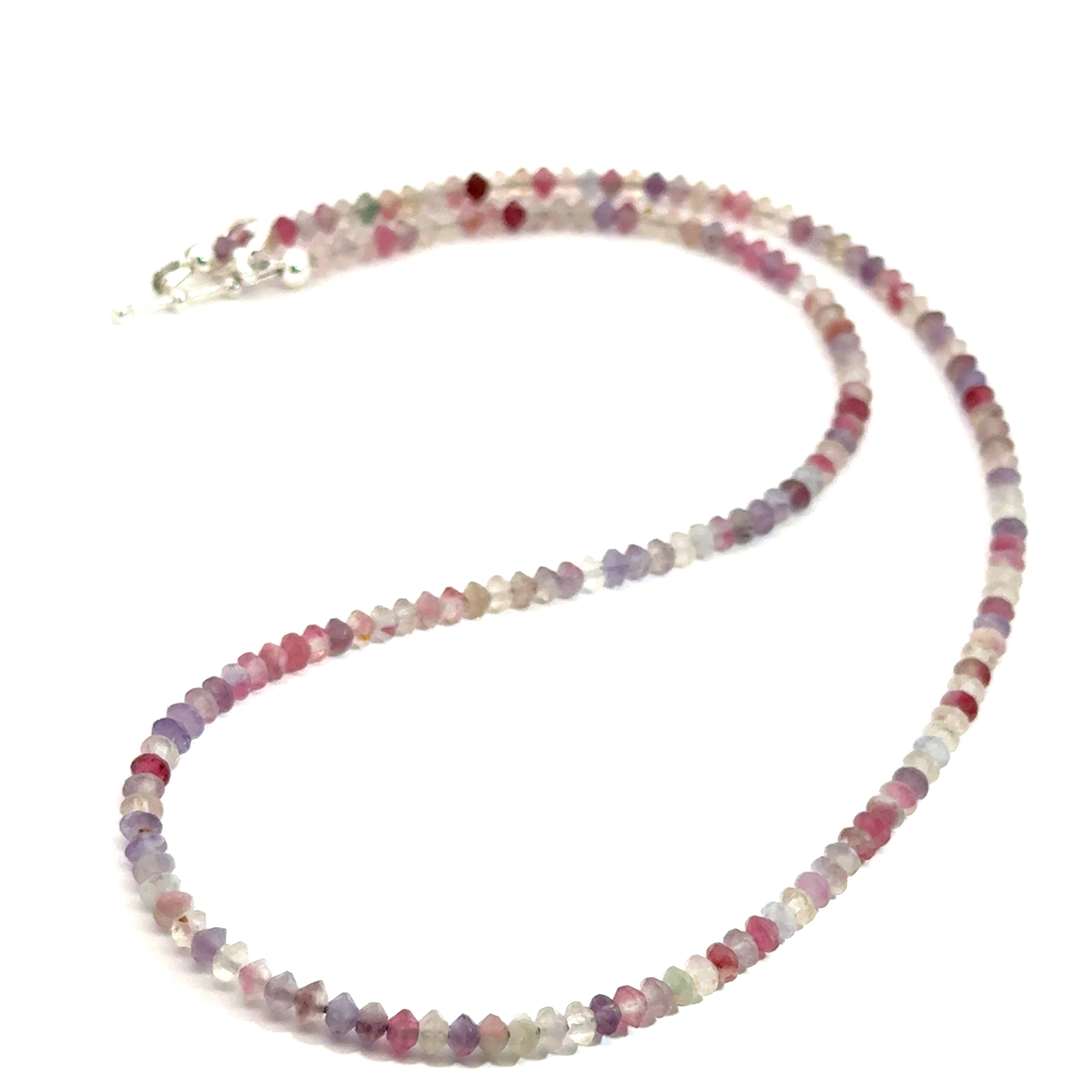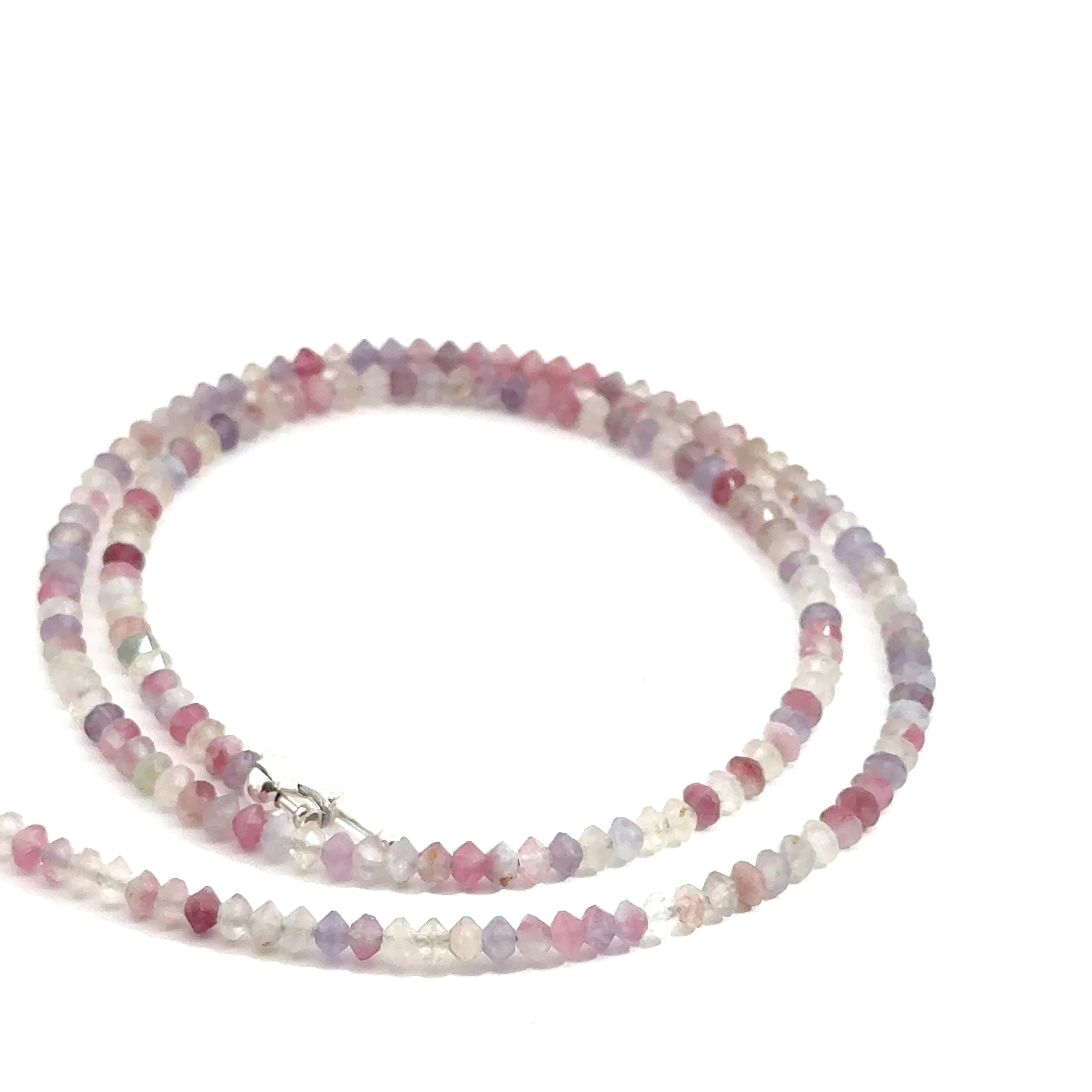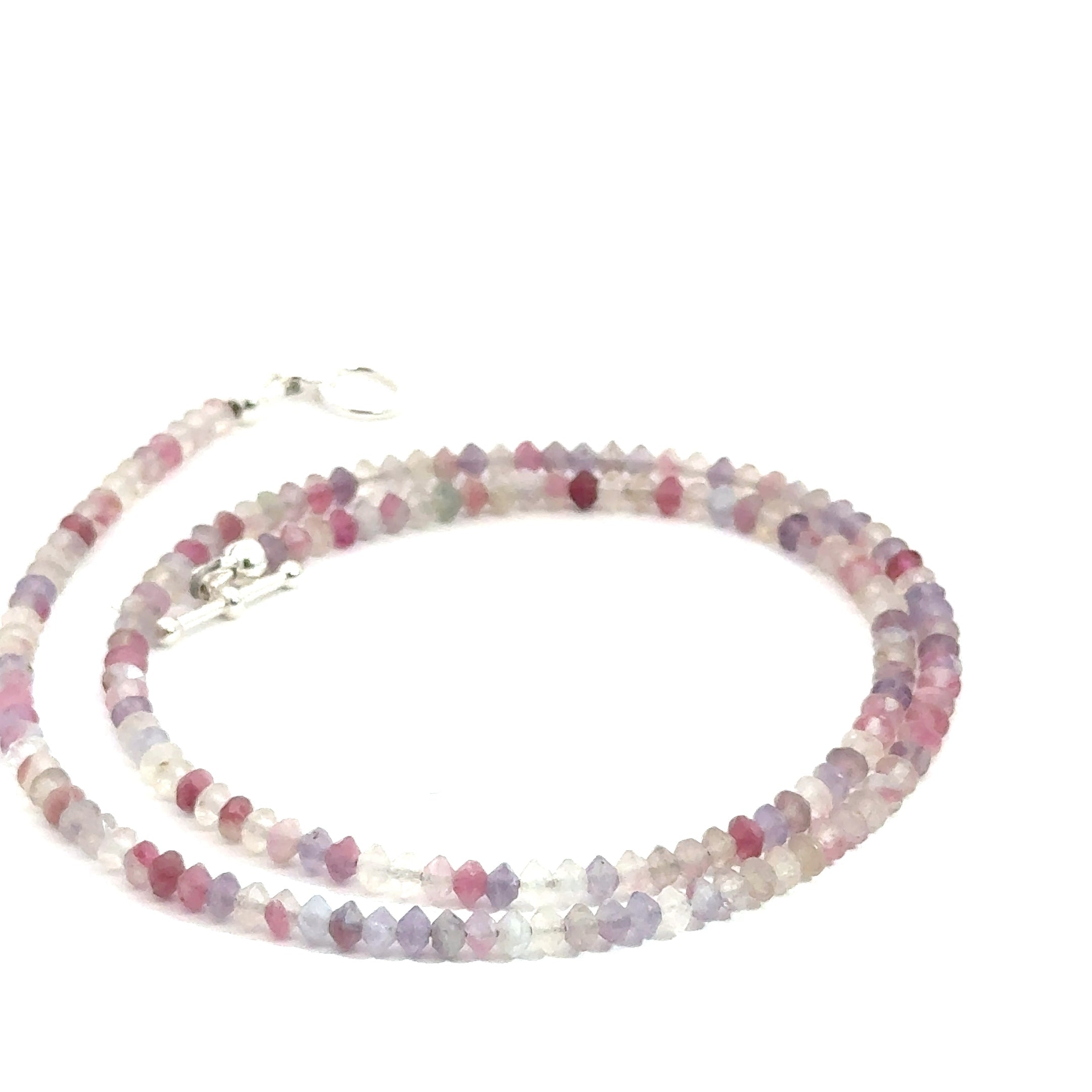 A stunning Pink Tourmaline faceted gemstone necklace with a sterling silver toggle. Size 18.5'' and might fall below one's collarbone. A great necklace that could be worn every day, on a special occasion, on its own, or layered with other necklaces. A great healing stone necklace, too. A must-have! This necklace also has a matching bracelet if you want to buy it as a set, but it is sold separately.