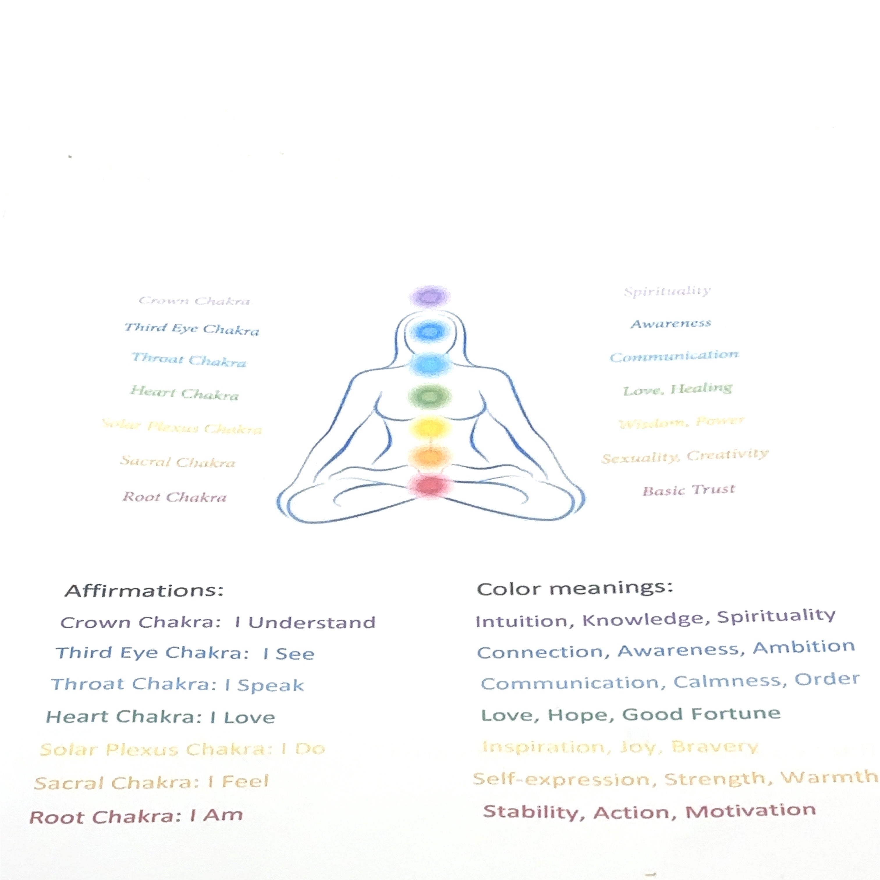 Includes gemstone card, chakra chart, affirmations, and color guide