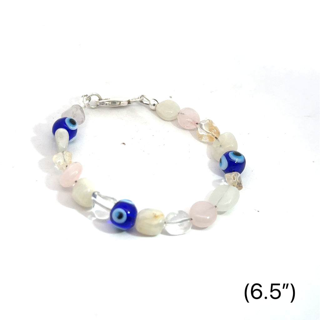 Rose, Clear Quartz & Citrine Bracelet – Evil Eye Accents with Sterling Silver Clasp