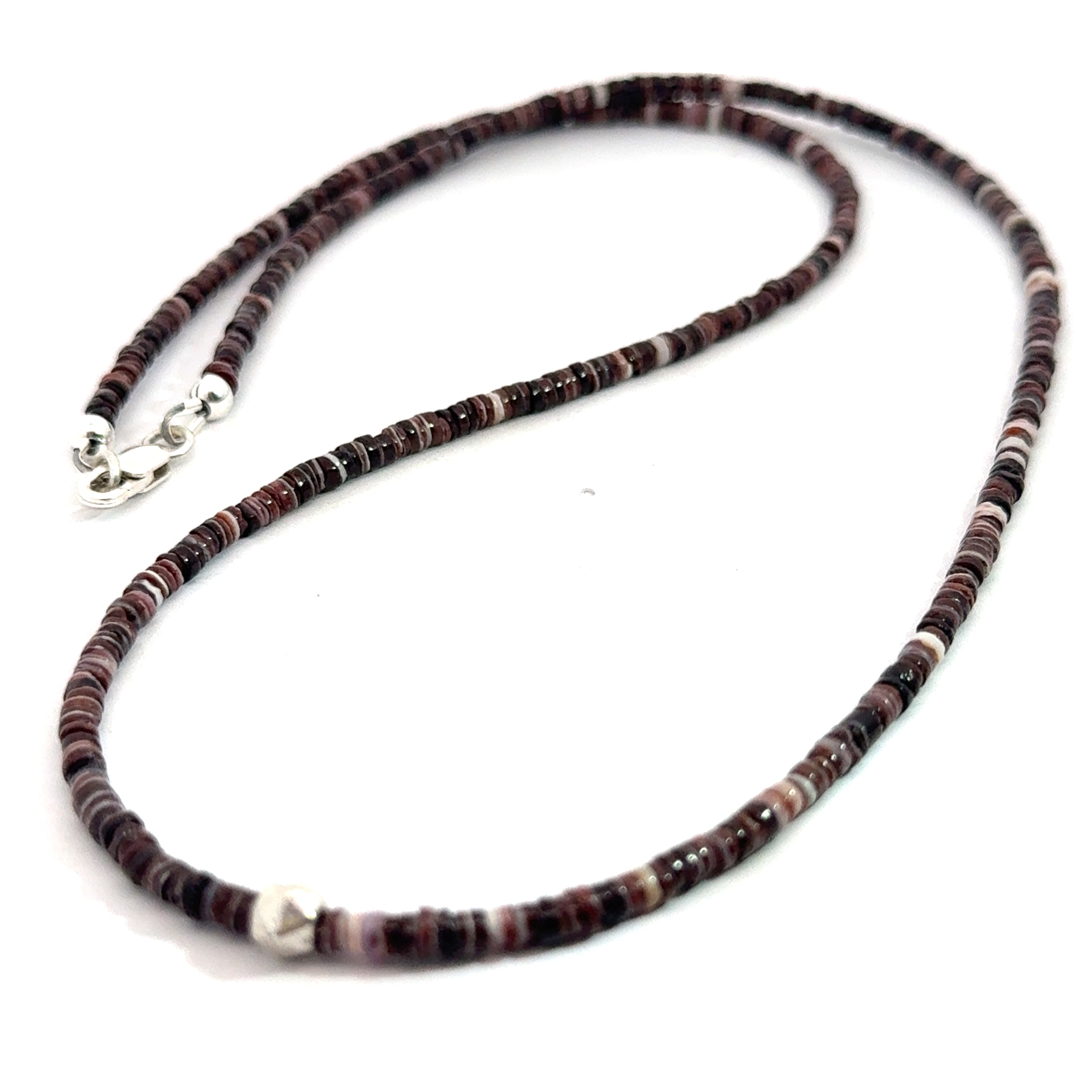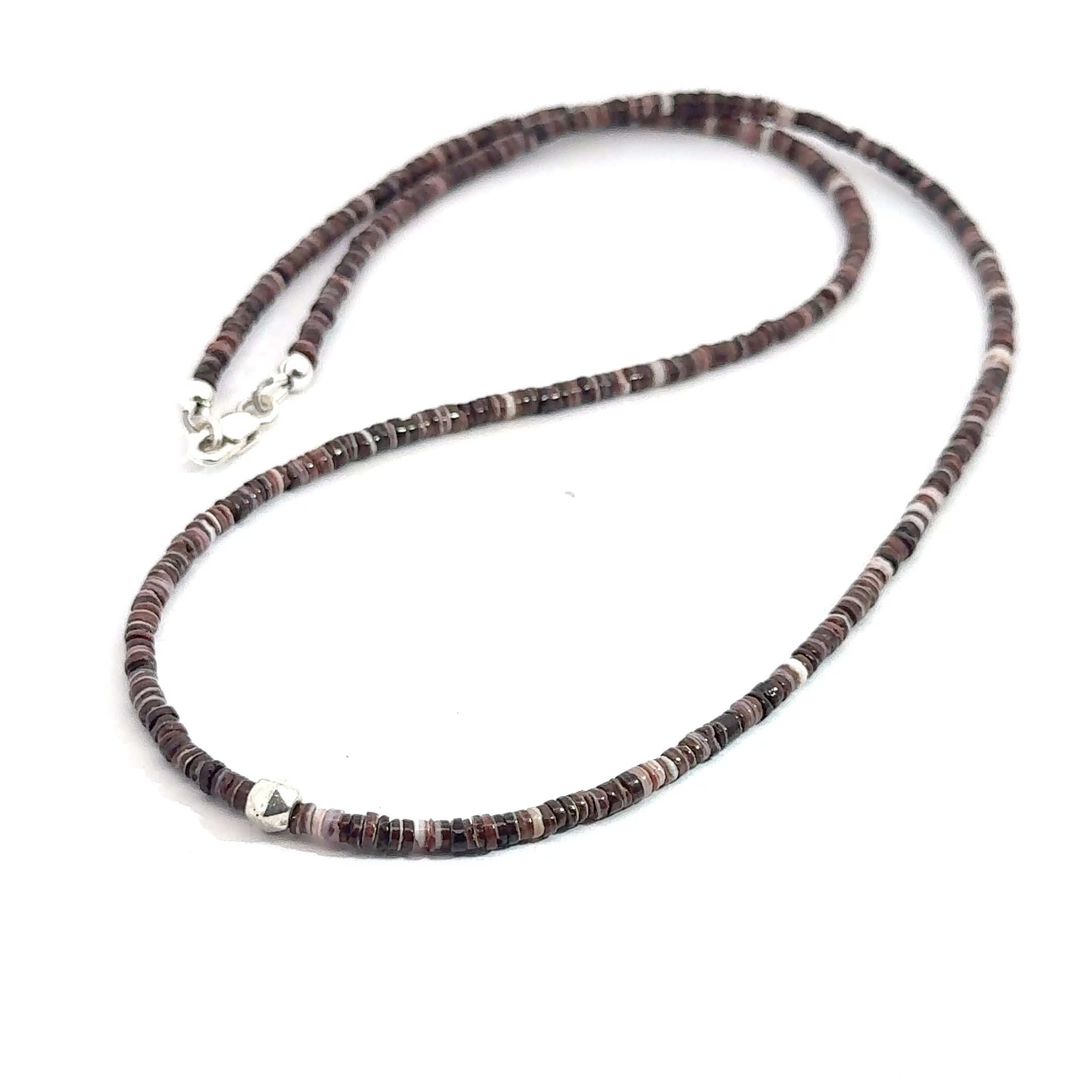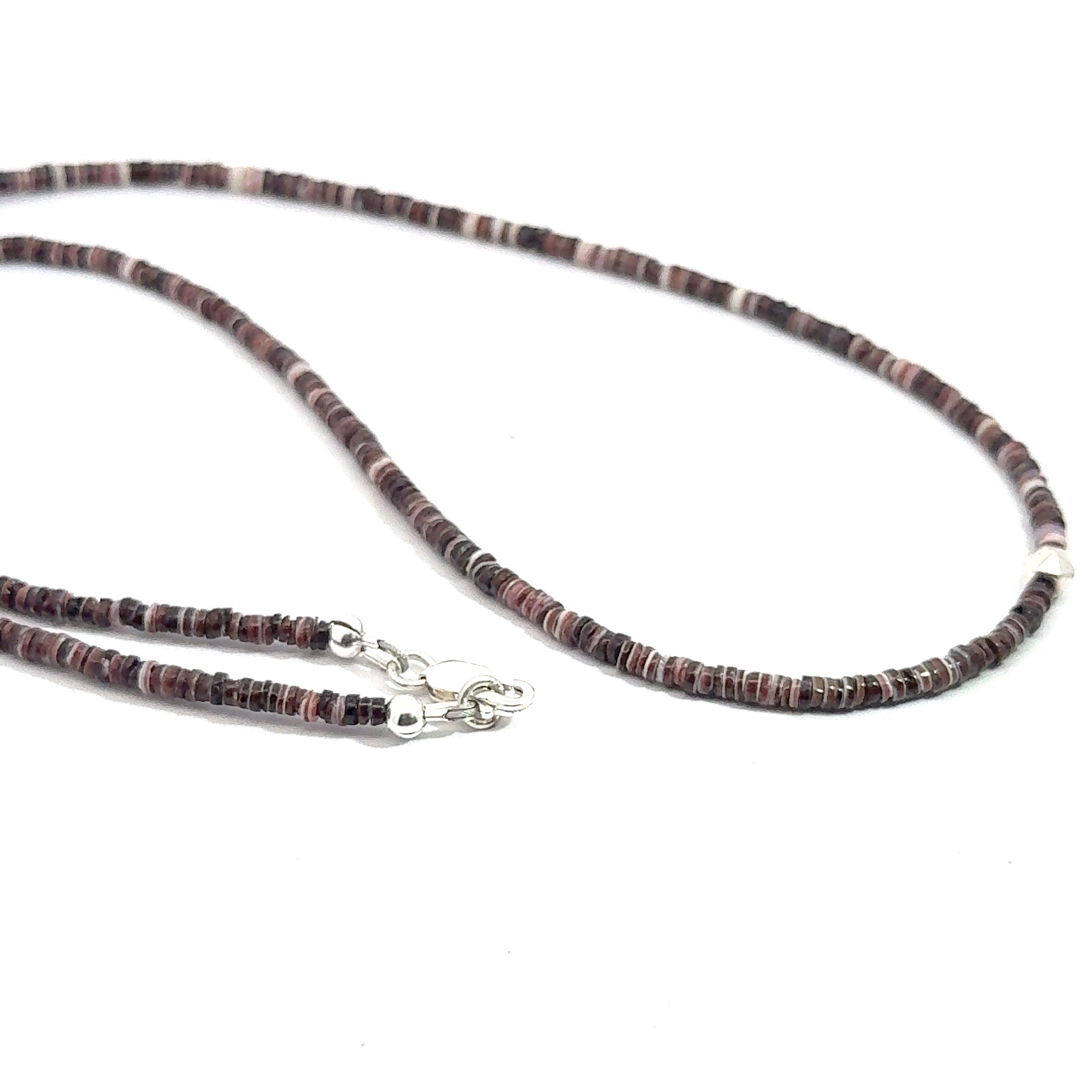 Shell Gemstone Beaded Necklace – 3mm Heishi Beads with Sterling Silver Lobster Claw (23.5")